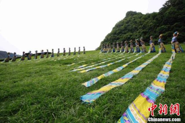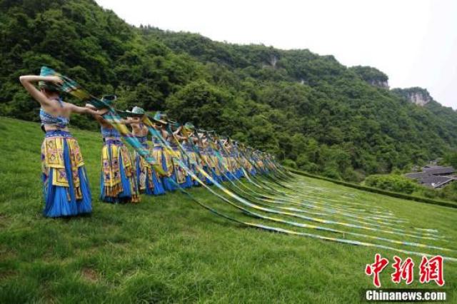 5月3日,湖南張家界武陵源黃龍洞風(fēng)景區(qū)的青年員工身著盛裝,上演了一場精彩的苗族頭帕秀,喜慶五四青年節(jié)的到來。